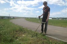 На фото – Хабибуллин Азат со своей бензокосилкой.