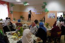Мы чествуем представителей старшего поколения. В гости были приглашены не только наши почетные учителя-ветераны, но и те пожилые бабушки и дедушки, кому мы круглогодично оказываем "тимуровскую" помощь. Все с готовностью откликнулись на приглашение, несмотря на пасмурный день зал-"кафе" был полон гостей. Среди гостей был участник ВОВ, ветераны труда и труженики тыла.Чаепитие, организованное силами педагогического коллектива, сопровождалось праздничным концертом, который в свою очередь организовали учащиеся - члены самоуправления. Наши ветераны проявили активность, вспомнили свою молодость, спели песни, делились впечатлениями. Им очень понравилась наша новая школа, видео-презентации, стенгазеты и выступления детей. Все участники праздника, воодушевленные, с букетами в руках разошлись по домам.
