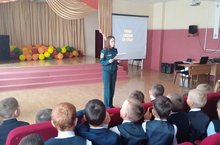 В рамках профилактики дорожно-транспортных происшествий для учащихся начальных классов была проведена линейка по теме «Правила дорожные знать каждому положено!» . Начальник Буинского отделения отдела профилактики ТУ в г. Казани ГБУ "Безопасность дорожного движения"-"Внимание-дети", Мурзакова Сириня Масхудовна рассказала о том, как должны вести себя дети, чтобы не оказаться в центре дорожного происшествия, какие виды пешеходных переходов бывают, на какой сигнал светофора нужно переходить дорогу «по зебре», какие правила существуют для велосипедистов, любителей роликов, самокатов и многое другое.