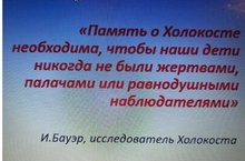 Сегодня, в рамках ежегодной недели Памяти жертв Холокоста, проводимой совместно с Российским еврейским конгрессом при поддержке Федерального агентства по делам национальностей, Правительства города Москвы и центром «Холокост», вот уже в десятый раз, в старших классах школы прошло мероприятие, приуроченное к Международному дню Памяти Холокоста и очередной годовщине освобождения Красной Армией лагеря смерти «Аушвиц» (Освенцим).