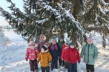 Сегодня на прогулке дети пополнили зерном кормушки для птиц