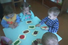 малыши играют в дидактическую игру "Овощи и фрукты" 17.06.2015