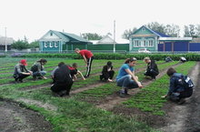 Работа на пришкольном участке продолжается. Прополка грядок, цветников требуется почти каждый день. Но мы работу любим. Мы хотим, чтобы наш участок был аккуратным, чтобы получился богатый урожай.