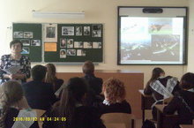 Учитель физики Николаева Н.С. пригласила старшеклассников на урок, посвященный первому полету Ю. А. Гагарина в космос. Она в увлекательной беседе рассказала учащимся о первооткрывателях космического пространства. В конце урока было организована викторина "Знаешь ли ты космос?"