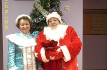 Сегодня Дед Мороз и Снегурочка поздравили всех работников нашей школы, вышедших на пенсию с Новым годом и подарили небольшие подарки.