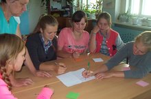 Сегодня в лагере "Улыбка" День дружбы. Проведено мероприятие "Дружба начинается", в котором участвовали 2 команды "Дружба" и "Леопольд". Дети читали стихи, исполняли песни о дружбе, угадывали загадки, продолжали пословицы, исполняли частушки, а в заключении вывели правила дружбы. Победила команда "Дружба".