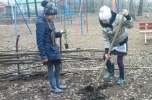 Посадка деревьев на школьном дворе 25.04.2015