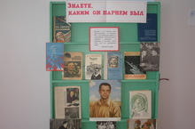 К 80-летию со дня рождения лётчика - космонавта СССР, впервые в истории человечества совершившего полёт в космос, Юрия Алексеевича Гагарина в школьной библиотеке была организована книжная выставка : "Знаете, каким он парнем был!"