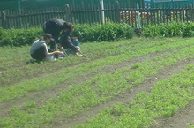 В трудовом лагере сегодня День спорта, но главное - это работа на пришкольном участке.
