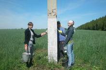 Наша школа сегодня трудилась на уборке территории села и близлежащих дорог. Первая бригада занималась побелкой столбов. Вторая бригада в это время убирала возле столбов молодую поросль кустарников.