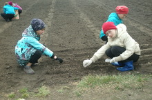 На пришкольно-опытном участке начались весенние работы. Учащиеся 5 класса на уроке технологии занимались посадкой ранних овощных культур.
