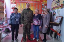 Сегодня в школе прошла встреча с участником спецоперации на Украине Вареновым Павлом. Павел посетил школьный краеведческий музей и Комнату Боевой Славы, посидел за своей школьной партой.