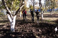 Продолжаются осенние работы в школьном саду. Ребята занимаются обработкой приствольного круга.