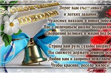 Школа останется у вас в памяти самым светлым и радостным воспоминанием несмотря на то, что не всё порой бывало гладко и ровно. Впереди вас ждет новая дорога, с новыми встречами и расставаниями, с новыми взлетами и падениями, с новыми мечтами и горящими сердцами. Пусть новый путь станет для вас успешным. Оставайтесь верными себе и своим жизненным ориентирам.