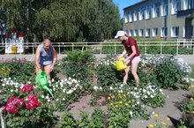 В рамках трудовой четверти учащиеся 10 класса ухаживают за цветниками, пропалывают и поливают грядки, благоустраивают пришкольную территорию и пришкольный участок.