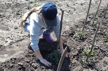 Сегодня учащиеся высаживали помидоры на пришкольном участке. Надеемся на богатый урожай.