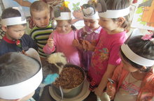 Балалар кошлар турында табышмакларга җавап тапты,санамышлар әйтте,уеннар уйнады, соңыннан бергәләп "Карга ботка"сыннан авыз иттеләр.