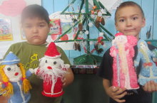 Чыршыбызны бизәү өчен уенчыкларны балалар белән бергәләп әниләребез,әбиләребез дә ясады. Гибатдинов Ислам, һәм Воробьёв Фёдорның Кыш бабай һәм Кар кызлары беренче урыннарга лаек булды.