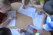 Кечкенәләр төркеменә йөрүче балаларыбыз хөрмәтле ветераннарыбызга бүләккә-открыткалар ясадылар.