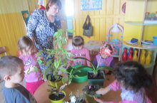 Бакчабызда гөлләр үстерүдә балалар да теләп катнаша. Алар тәрбияче апалары белән бергәләп гөлләрнең туфракларын йомшарталар,тузаннарын сөртәләр.Бүген кечкенәләр төркемендә тәрбияче Сунгатуллина Е.А. "Үсегез,гөлләрем" дигән темага әңгәмә үткәрде. Ул балаларга гөлләрнең төрләре,аларның әһәмияте, гөлләрне үстерү ,тәрбияләү белән таныштырды.