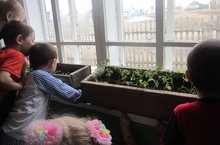 Тәрәзә төпләрендә бакчабызга утырту өчен үсентеләр үстерәбез. Помидор, чәчәк үсентеләрен балалар һәр көнне күзәтеп торалар, су сибәләр.