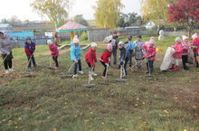 Укучылар белән бергәләп бакчабызда коелган яфракларны җыйдык.
