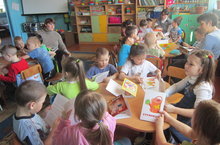 Авылыбыз китапханәчесе Дранрова Инна апалары балаларны китапханәгә кайткан яңа китаплар күрсәтмәлекләр белән таныштырды.Ул әкиятләр, шигырьләр белән таныштырды.