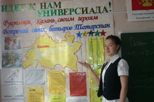 “Яшь бөреләр” түгәрәге әгъзасы Рәхмәтуллина Илсөяр башка түгәрәк әгъзаларын да Казанда үтәчәк Универсиада яңалыклары белән таныштырып тора. Илсөяр түгәрәккә икенче сыйныфтан бирле йөри. Язу сәләтенә ия, укырга ярата торган кыз дөньякүләм яңалыклардан читтә калмый. Әледән-әле төрле-төрле бәйгеләрдә катнашып призлы урыннар яулый Илсөяр.