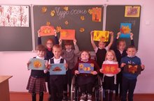 У первоклашек фантазия без границ. Они сделали интересные аппликации из осенних листьев.