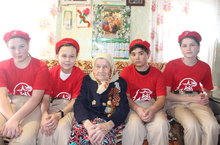 Юнармейцы и учащиеся посещают к ветерану Великой Отечественной войны концертными номерами. Поздравили ветерана с днем рождения.