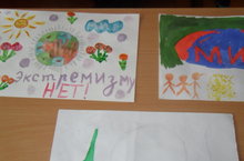 Во время классного часа начальные классы после беседы о терроризме нарисовали рисунки.