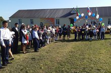 Нарядные ученики и ученицы с пестрыми букетами цветов, учителя и родители заполнили школьный двор. Звучит музыка, и все классы строятся на школьном дворе. Все застыли на торжественной линейке под звуки гимна России. Всё наполнено торжеством и гордостью, что ты частичка этого действа, этого великого праздника Дня Знаний. Ведь знание каждого из нас – это будущее каждого из нас, это будущее страны. Торжественная линейка объявляется открытой. По традиции первыми представляют малышей-первоклассников, их в этом году 8 . Директор школы Лазарев С.В. и гости поздравили учащихся школы с новым учебным годом. Среди гостей школьного праздника был глава района Альберт Ильгизарович Рахматуллин.