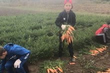 Мы дружно в школе собирали морковь.