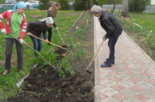 в школе организуются субботники, посадили цветы.