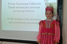 Сегодня Мингалеева Р. (рук. Бикмуллина М. Г.) и Тимуршина З. (рук. Абдрахманова И.Х).выступили на XI Международном конкурсе чтецов имени Габдуллы Тукая.
