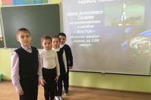 Беренче дөньяда космонавт Ю.А. Гагарин турындагы күзаллауларын гомумиләштерү һәм тирәнәйтү, танып-белү кызыксынуын үстерү, үз халкың өчен горурлык хисе тәрбияләү максатыннан, 2 нче сыйныфта Ю. А. Гагарин турында «Күкне яулаган кеше» дигән видеоролик карау оештырылды.