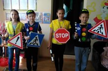 С самого утра ребята прослушали инструктаж по безопасности дорожного движения. Затем поиграли в игру «Знаем правила движения, как таблицу умножения». Провели игровую программу «Пешеход, велосипедист, водитель». Ребята показали свои знания по правилам дорожного движения. После обеда посмотрели выступление агитбригады ЮИД «Светофор».