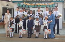 Первоклашки, вышедшие на майдан с первыми учителями, получили ранцы и наборы для первоклассников. Агрофирма "Август" также внесла свою лепту и подарила им школьные принадлежности. Ученице нашей школы из многодетной семьи подарили спортивную форму, ученику- школьную форму. Все дети получили сладкие подарки.
