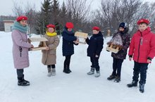 Ежегодно 15 января отмечается всероссийский экологический праздник «День зимующих птиц России». Его отмечают в память о писателе Евгении Носове, который прочитав однажды стихотворение Александра Яшина «Покормите птиц зимой…», на протяжении многих лет вывешивал кормушки для птиц. А чтобы привлечь к кормлению птиц других жителей родного города, развешивал в людных местах листовки со стихотворением Яшина. В этот день экологи призывают население помочь пернатым. Учащиеся нашей школы тоже с желанием участвовали в акции.Они не только развешивали кормушки на деревьях, но и кормили пернатых заранее приготовленным угощением.