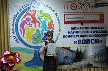 В региональной научно-практической конференции обучающихся "Поиск" по направлению "Талантливые жители - успешные выпускники района" ученица 4 класса Данилова Полина (руководитель Таймасова В.А.) своей исследовательской работой "Достойный выпускник нашей школы" заняла 1 место.