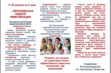 В соответствии с письмом руководителя Управления Роспотребнадзора по Республике Татарстан М.А.Патяшиной от 17.04.2021 № 07/10083 Министерство образования и науки Республики Татарстан сообщает следующее. По инициативе Всемирной организации здравоохранения в Европе, в том числе в Российской Федерации и Республике Татарстан в период с 26 апреля по 2 мая 2021г. проводится Европейская неделя иммунизации (далее ЕНИ-2021).