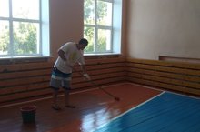 Подготовка школы к новому учебному году важный момент. Закончили косметический ремонт спортивного зала.