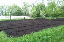 От момента весенней обработки почвы прошло около месяца. Сегодня в школе произвели высадку рассады томатов. Вот некоторые правила высадки: если у рассады стандартные размеры (высота 25-35 см и 8-10 настоящих листьев), ее сажают обычным способом. Выкапывают лунку размером чуть больше, чем земляной ком растения. В ней вертикально устанавливают саженец и засыпают его плодородной землей до семядольных или первой пары настоящих листьев. Переросшую же рассаду томатов сажают описанным ниже способом: выкапывают яму глубиной 8-10 и длиной 20-30 см. Саженец располагают под углом 45 градусов таким образом, чтобы корни его были направлены на юг, а ствол – на север. При посадке следят за тем, чтобы ствол саженца не касался почвы, а нижние листья располагались на высоте 15-20 см от нее. Чтобы этого добиться, самые нижние листья удаляют. Только делать это желательно заранее, чтобы ранки успели подсохнуть, и в них не попала инфекция.