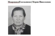 Родилась 15 июля 1923 года в деревне Хозесаново Кайбицкого района Татарской АССР. После окончания сначала Хозесановской начальной школы, а потом Молькеевской семилетней и Старо-Тябердинской средней школы она в сентябре 1938 года поступила учиться в 3-годичную акушерскую школу. Окончила ее в июне 1941 года. После окончания акушерской школы ее сразу же призвали на военную службу. Мария Николаевна находилась на службе сначала при военном эвакуационном госпитале № 110 , а после в специальном госпитале №3656 медсестрой. Там она заболела сыпным тифом , потом была в отпуске до 28 февраля 1945 года . За участие в Великой Отечественной войне она награждена в 1946 году медалью «За победу над Германией в ВОВ 1941-1945 гг.». 16 марта 1954 года Мария Николаевна вышла замуж за Николая Кузьмича Мокрецова. Он тоже фронтовик. Емельянова Мария Николаевна после демобилизации с 1946 по 1978 год работала медсестрой и акушеркой в Хозесановском фельдшерско-акушерском пункте. Она неоднократно избиралась депутатом Хозесановского сельского совета. Умерла 17 февраля 1987 года.