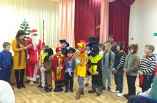 Учащихся начальных классов сегодня посетили Дед Мороз и Снегурочка, сказочный петушок, лиса, Баба Яга, медведь, волк, собачка. Ребята показали новогоднее представление-сказку, много играли, пели песни, водили хороводы. В конце учащиеся получили сладкие подарки, все ребята остались очень довольны!