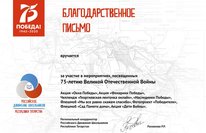 Обучающиеся и педагогический коллектив нашей школы получили благодарственное письмо за участие в мероприятиях, посвящённых 75-летию Великой Отечественной войны от Регионального координатора Российского Движения Школьников Республики Татарстан РР. Раззаковой.