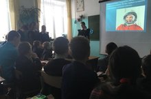В нашей школе учащиеся 9 классов под руководством учителя физики Зиганшиной З.Х., показали презентацию о Ю.А. Гагарине, прочитали стихи -
