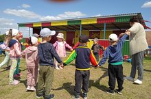 Балалар хәрәкәтле уеннар уйнарга яраталар. Саф һавада уйнау балаларга шатлык һәм сәламәтлеккә бәяләп бетергесез файда китерә. Урамда уйнаганда , күнегүләр ясаганда балаларның кыюлык, мөстәкыйльлек, җитезлек һәм осталык күрсәтергә мөмкинлекләре арта. Алар бүген “ Песи белән тычкан “ уенын уйнадылар.