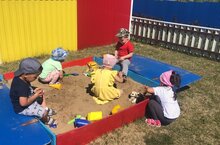 Бүген көзнең матур, кояшлы җылы көне булды. Балалар, тәрбияче Света апалары белән саф һавада уеннар уйнадылар. Алар шаяралар, күңел ачалар.