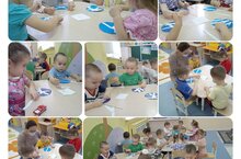 Кечкенәләр төркеменә йөрүче балалар рәсем эшчәнлегендә кар бөртекләрен ясадылар.